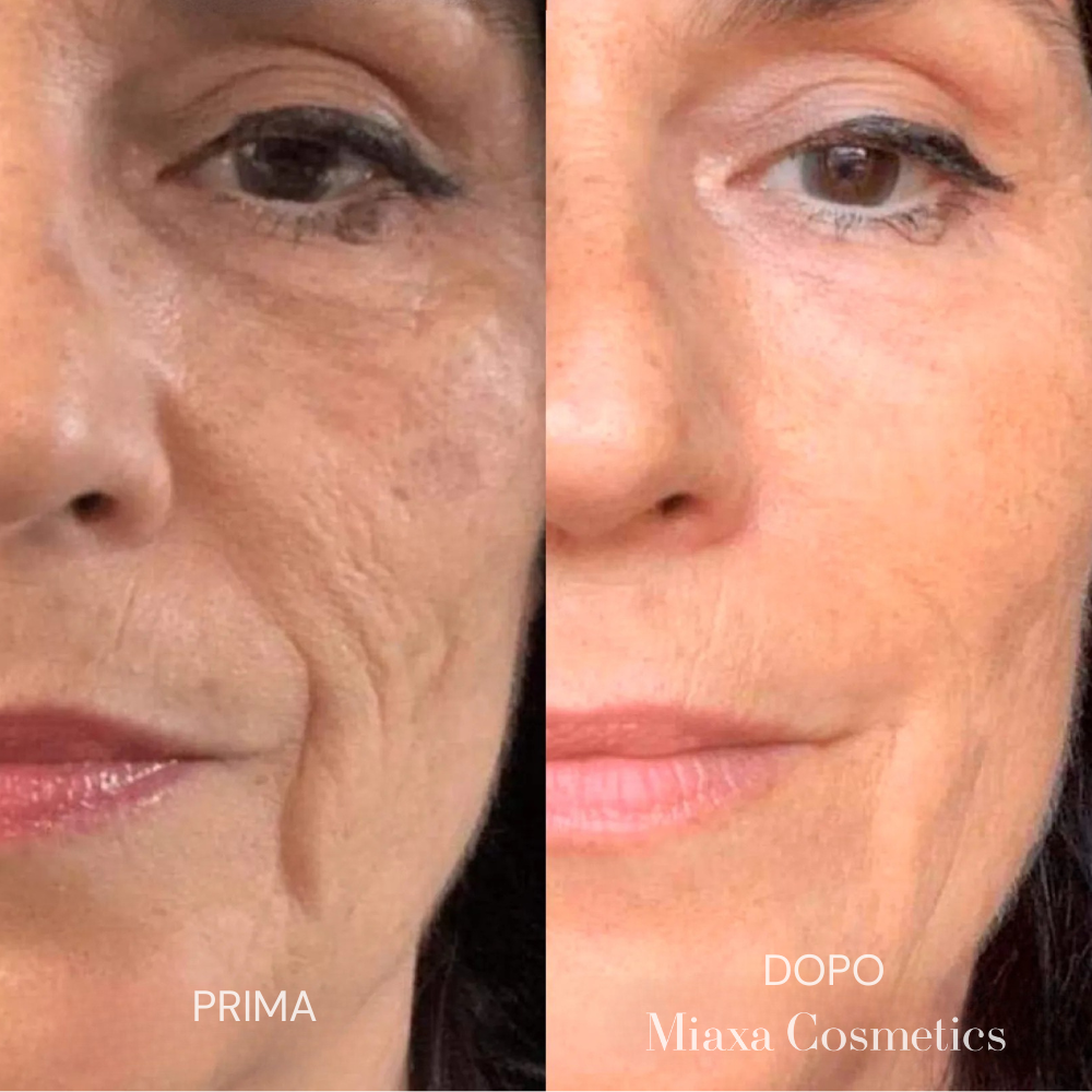 Agisce su rughe, linee sottili, macchie scure e texture irregolare.